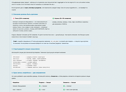 - Контроль объёма файла: общий лимит и лимиты на секции/элементы, чтобы llms.txt оставался компактным.