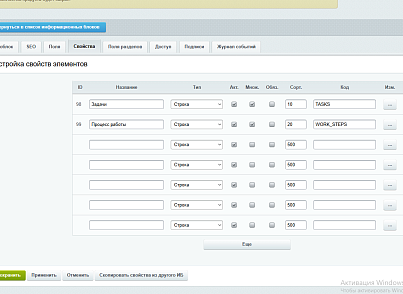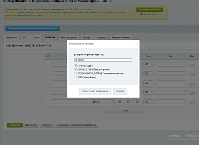 - Страница автоматически перезагрузится, и скопированные свойства появятся в текущем инфоблоке