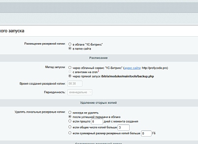 - Совместимость со стандартными настройками резервного копирования в Битрикс