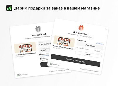 Доводим брошенные заказы до оплаты через ценный для клиента подарок от партнеров ПрайсПорта. Передаем вам клиентов, которые недавно купили товар, близкий к вашему, повышая конверсию.