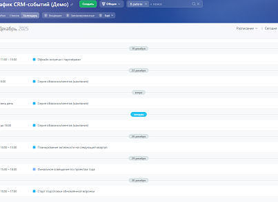 Календарь полностью интегрирован в стандартный интерфейс CRM.