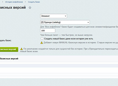 - Исключения: Возможность полностью отключить версионирование для конкретных инфоблоков или полей.