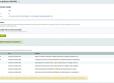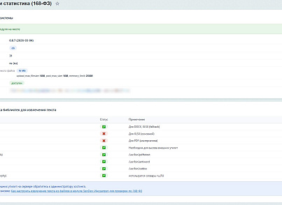 0.8.65 (02.03.2026) Улучшена работа морфологии словарей в части обработки слов подпадающих под нарушения, но написанных с большой буквы, что ранее могло расцениваться как имя собственное. В раздел 'Диагностика' добавлен блок - 'Диагностика библиотек для извлечения текста', которая позволяет проверить возможность сканирования файлов (PDF, DOC, DOCX, TXT, HTML, XLSX). Реализация будет доступна в следующем релизе для тех, кто приобрел модуль.