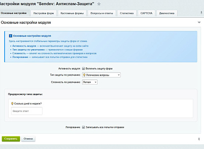 - Зайдите в настройки модуля (Сервисы → SenDev: Protect → Настройки)