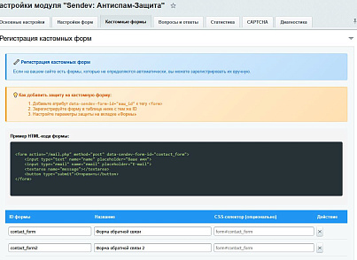 - Зайдите в настройки модуля → вкладка "Кастомные формы"