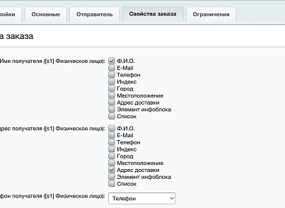 Свойства заказа - соответствие свойств заказа для получения необходимой информации о заказе