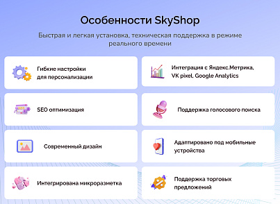 SkyShop — это интернет-магазин, отличающийся быстротой и лёгкостью настройки. Наша команда разработала мощный функционал для развития бизнеса и сделала его простым и понятным.