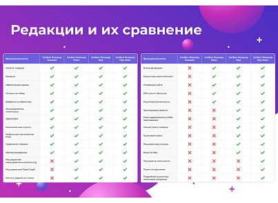 - «Малый бизнес», «Бизнес», «Корпоративный портал», «Энтерпрайз», «Интернет-магазин + CRM»