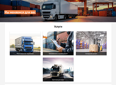 Готовое решение Sporina: Сайт-визитка — современный сайт-визитка для компаний, занимающихся перевозками грузов и т.д. Сайт можно настроить для себя и необязательно под перевозки, можно использовать шаблон для любых тематик.