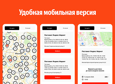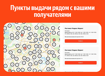 - 35 000+ пунктов выдачи и постаматов, в которых можно получить заказ;