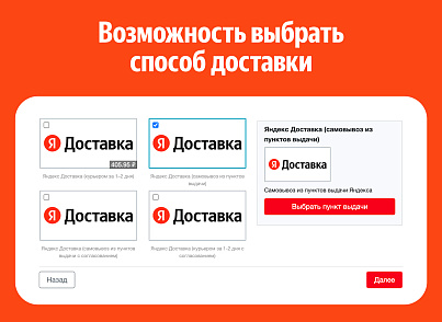 С Яндекс Доставкой можно отправлять заказы клиентам как внутри города, так и по России: курьером до двери получателя или в пункты выдачи и постаматы.