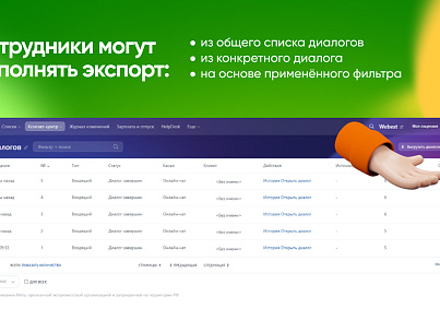 Сотрудники продолжают работать в стандартном разделе Контакт-центра и могут выполнять экспорт: