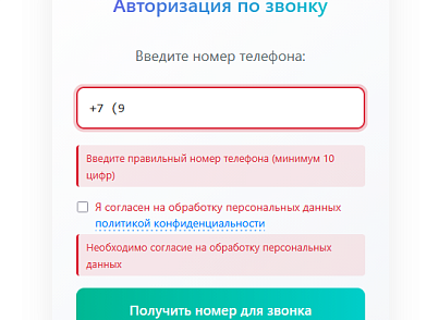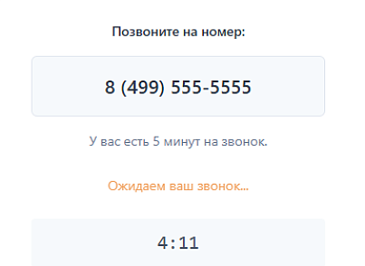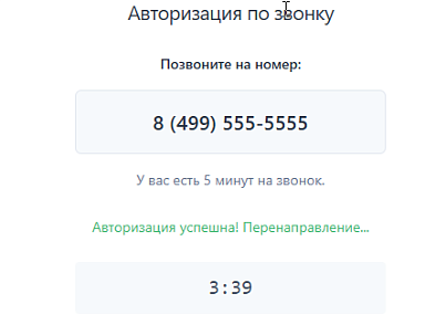 2. Простой процесс для пользователяПользователь вводит свой номер телефона в специальную форму. Система мгновенно показывает ему номер для звонка. Пользователь звонит на этот номер — и автоматически авторизуется на сайте.