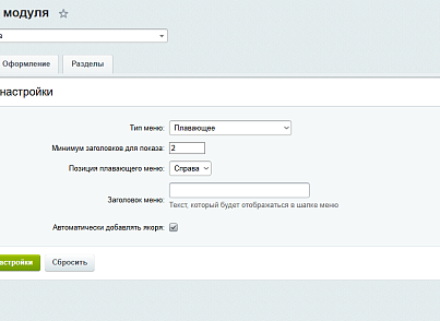 Плавающее меню работает сразу, для размещения встроенного меню, необходимо разместить в нужном месте страницы снипет #TOC_MENU#