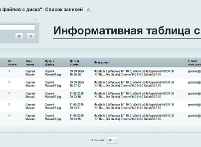 Программный модуль предназначен для комплексного мониторинга, регистрации и анализа всех операций по скачиванию файлов пользователями с Диска корпоративного портала Битрикс24. Решение обеспечивает детальную фиксацию метаданных каждой операции, формируя надежный журнал аудита для обеспечения контроля информационной безопасности, анализа пользовательской активности и расследования инцидентов.