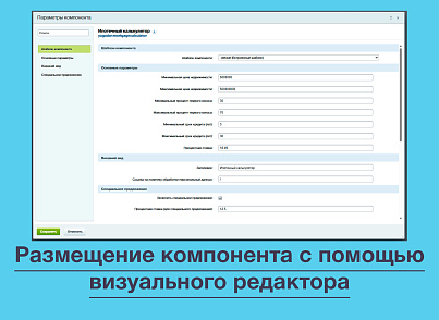 Все параметры калькулятора (процентная ставка, лимиты и т.д.) можно переопределить непосредственно при размещении компонента.