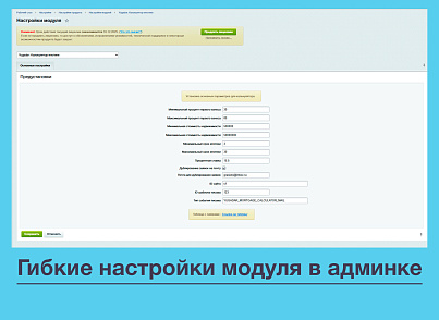 Перейдите в раздел: Настройки → Настройки модулей → Yugadar: Калькулятор ипотеки.